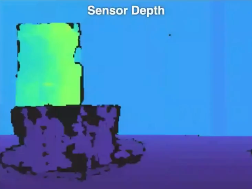 在机器人的视角里,两个杯子直接连成了一块,根本难以分辨,也自然无法准确拿取。RGB-D相机的不稳定,进一步导致了高质量RGB-D数据的缺失。
