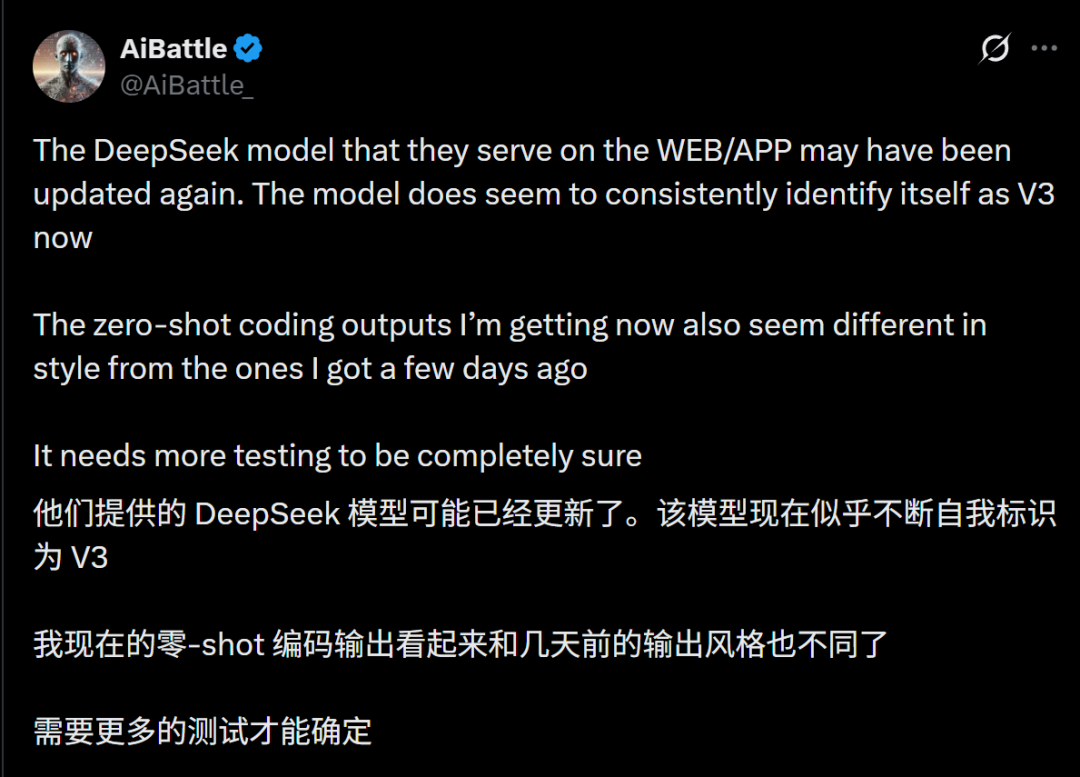 一个非常合理的推测,就是DeepSeek很可能正在「临发布状态」。