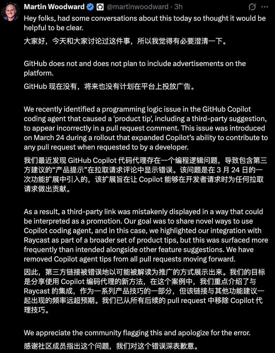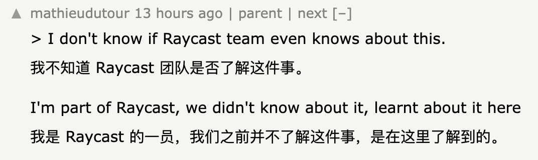 Copilot团队虽然光速道了歉,承诺不会再这样做,但Raycast这波躺枪是真冤啊……