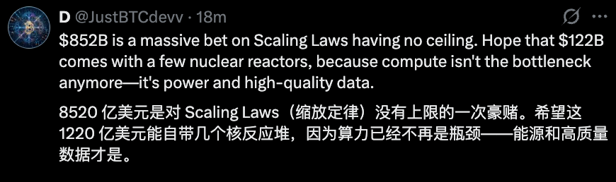 夸张的估值之下,不少网友认为,“这是对Scaling Laws没有上限的一次豪赌”。