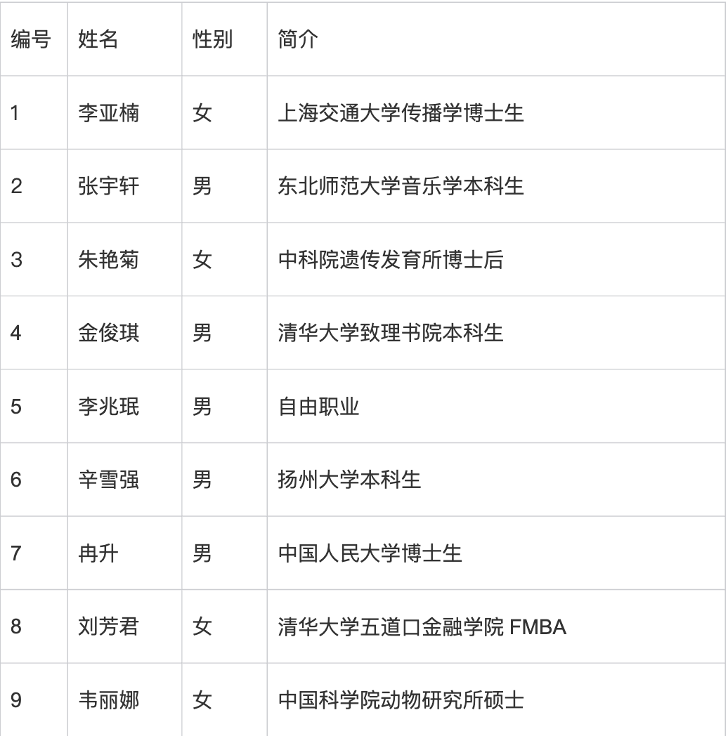 另外,以下名单也没有入选志愿者,特此通知,请散了吧。