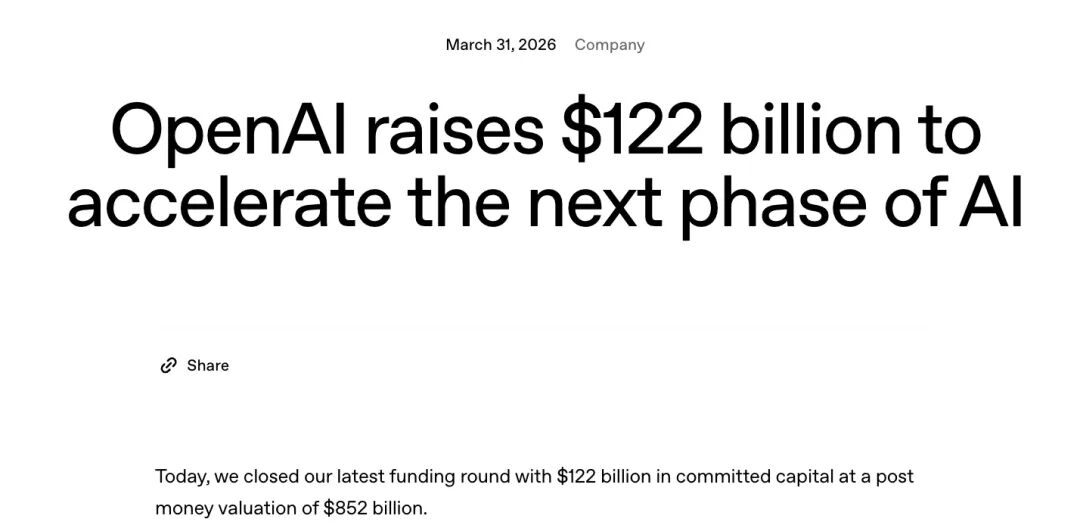 【新智元导读】Anthropic源代码惊天泄露刚刚刷屏,OpenAI就来抢头版了。就在刚刚,OpenAI宣布拿下1220亿美元融资,投后估值飙至8520亿!而且,首次向散户敞开大门。