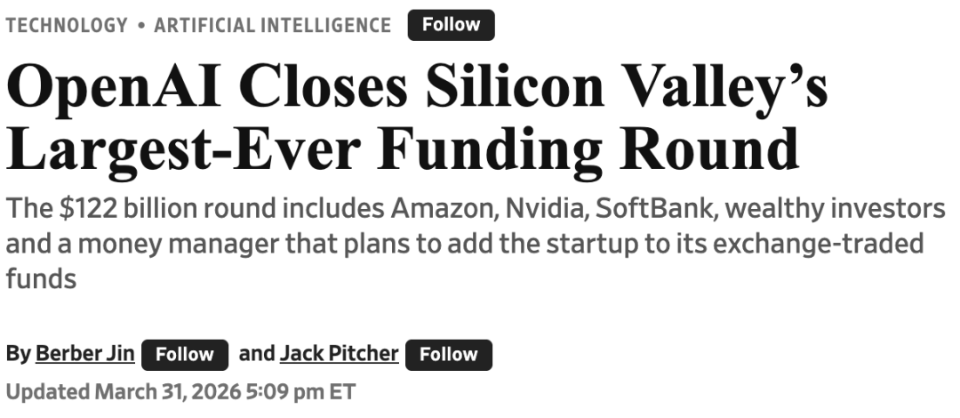 WSJ称,这次融资完成「硅谷史上最大融资轮」——