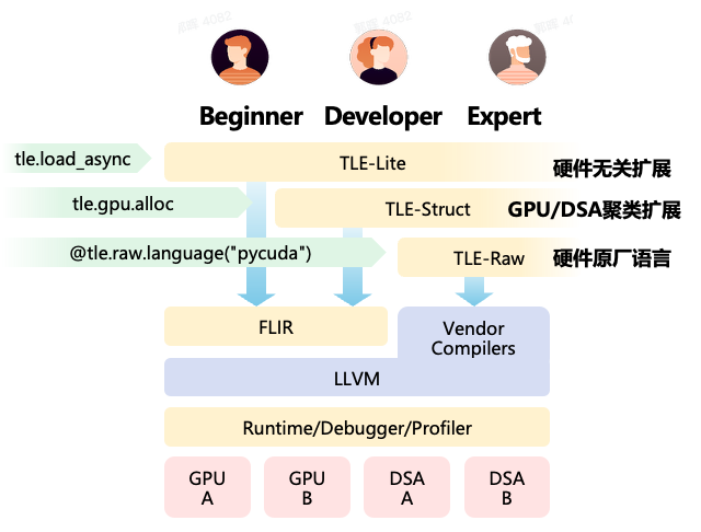 FlagOS 2.0的多芯片统一编译器FlagTree v0.5正式发布Triton-TLE(Triton Language Extension)——这是对原有Triton语言的全面扩展,让算子开发从单一GPU架构拓展到一个兼顾高性能、高开发效率的更广阔空间。