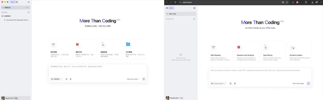 SOLO Web端(本次新增): 浏览器即开即用版本,同样包含Code和MTC模式,主打随用随走。