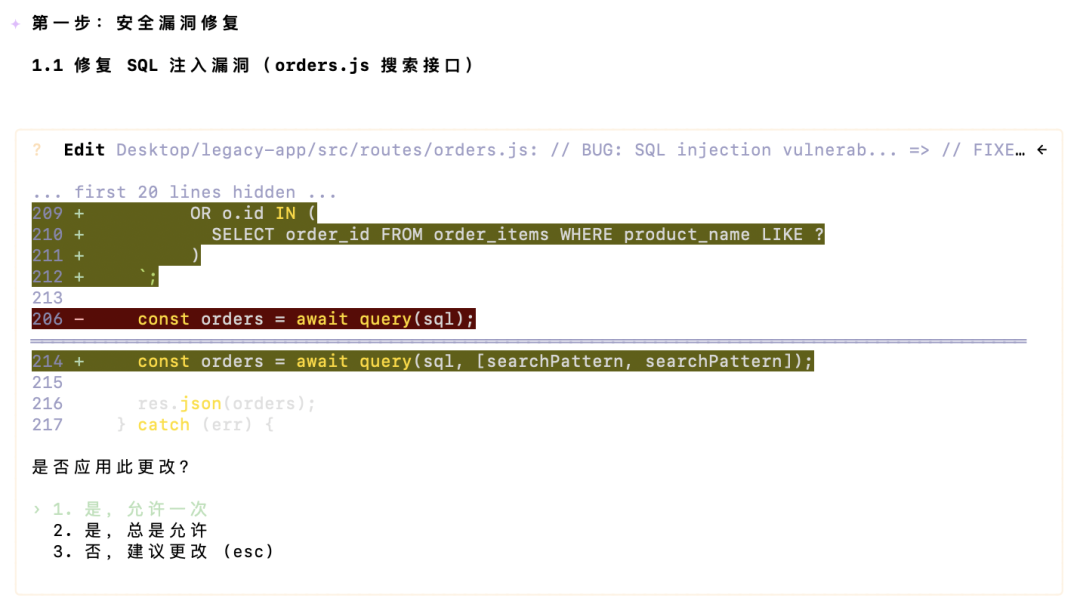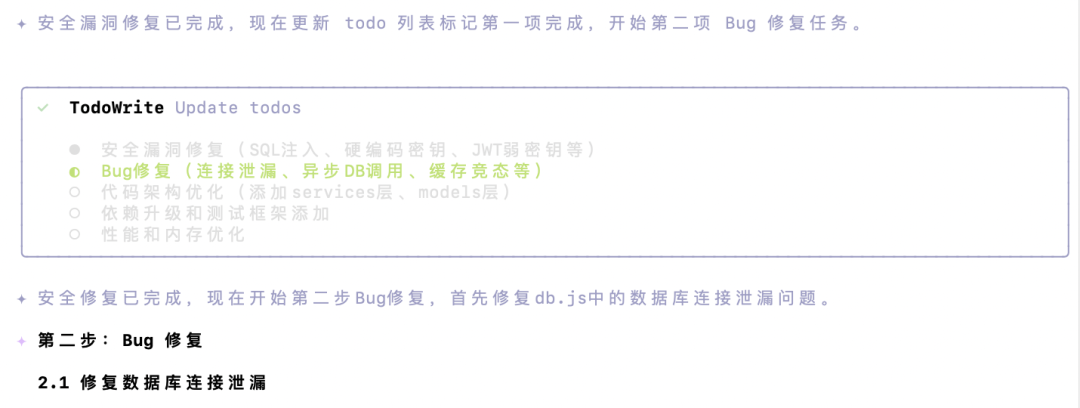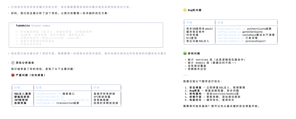 Qwen3.6-Plus看懂了原有逻辑,自动整理了一份优化清单,但是在动手之前还是询问了一句「需要开始实施吗」。