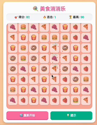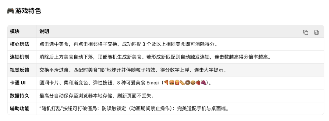 咱们最后再来试一个大家几乎都玩过的消消乐小游戏,这次我直接把提示词写到简单不能再简单:
