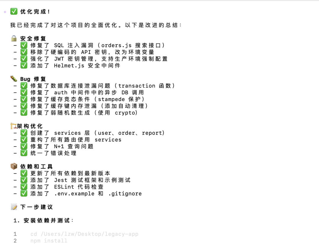 优化完成!人家具体都改了点啥呢——请看下方总结。最后嘛,还来了点小建议,be like: