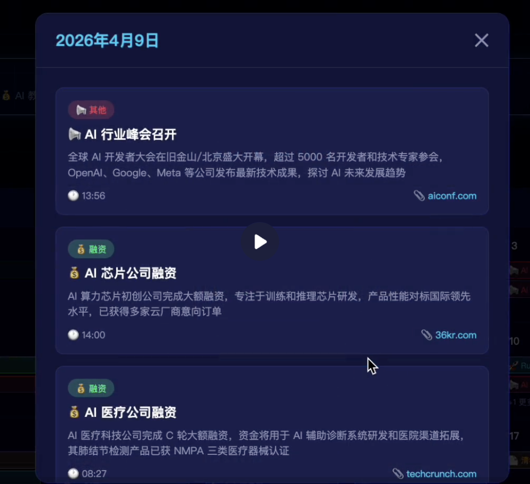 大概2分钟的时间,AI就给我搓出来了个完成度相当高的AI资讯日历网页。