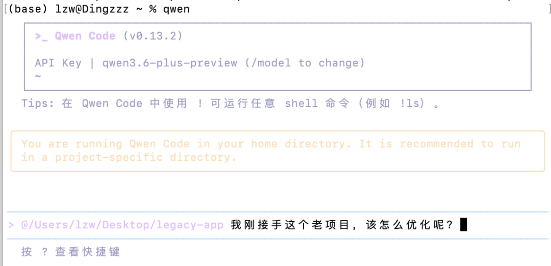 这次我又在Qwen Code命令行工具里,喂给了Qwen3.6-Plus一坨问题不小的老旧代码,让它捉捉虫: