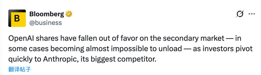 有观点认为,转让禁令并不能掩盖需求下滑的事实,因为即便是在那些不合规的非官方渠道,人们对OpenAI份额的渴求程度也早已大不如前。