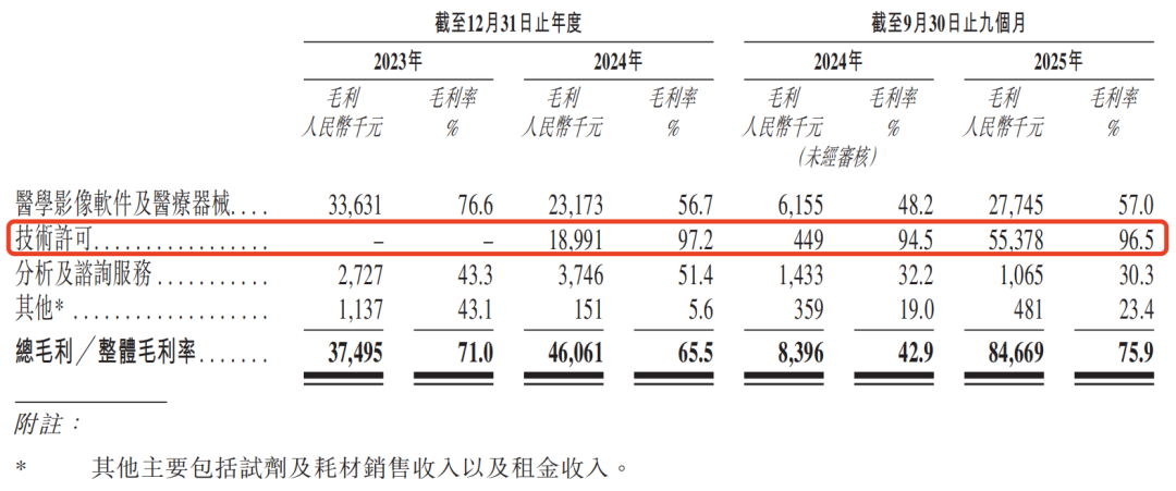 招股书显示,2025年前9个月,大模型技术许可业务毛利率高达96.5%,成为公司第一大收入来源。