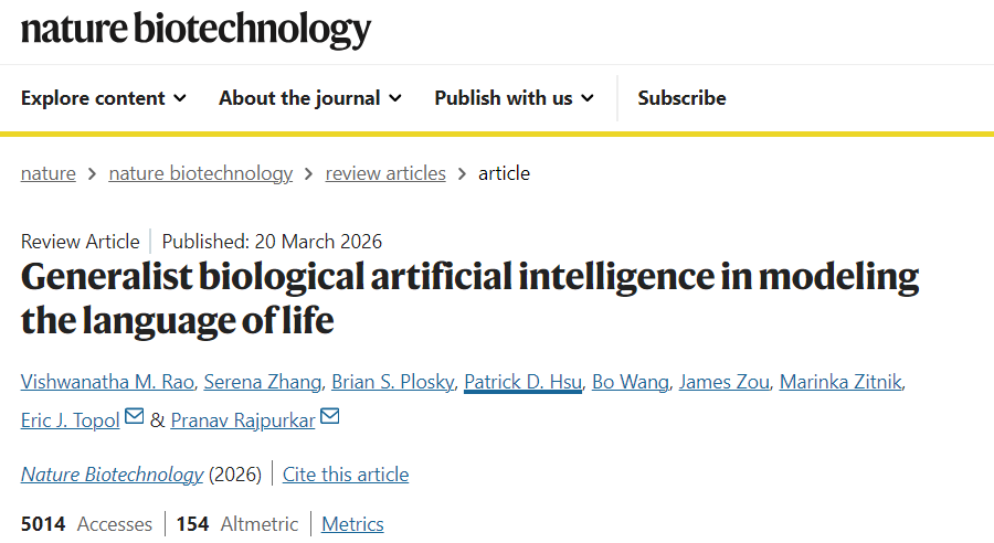通用生物人工智能(GBAI)代表了一种对“生命语言”(即从DNA到细胞功能的信息流)进行建模的变革性方法。为此,哈佛大学医学院、斯克里普斯研究所等机构的研究人员于2026年3月20日在《Nature Biotechnology》上发表综述文章,题为“Generalist biological artificial intelligence in modeling the language of life”。