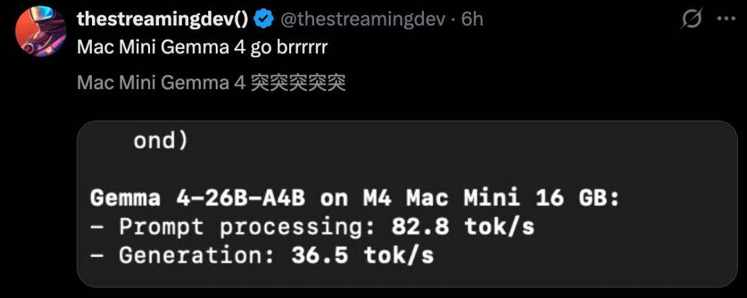 一台Mac mimi即可跑Gemma 4,还有人手机已经用上了。