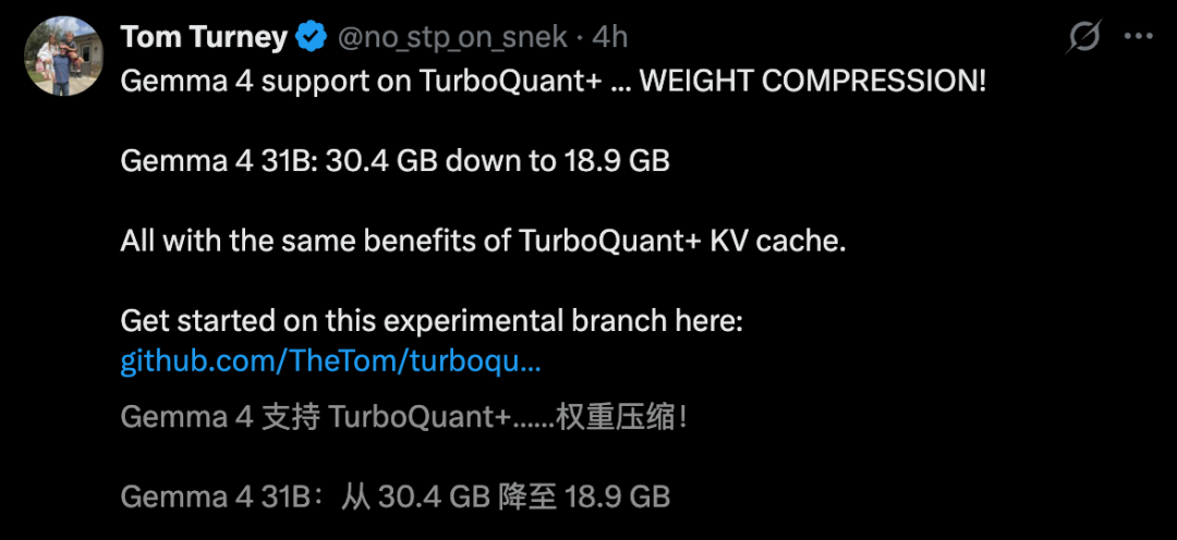 值得一提的是,Gemma 4还支持「被曝抄袭」的TurboQuant压缩算法。