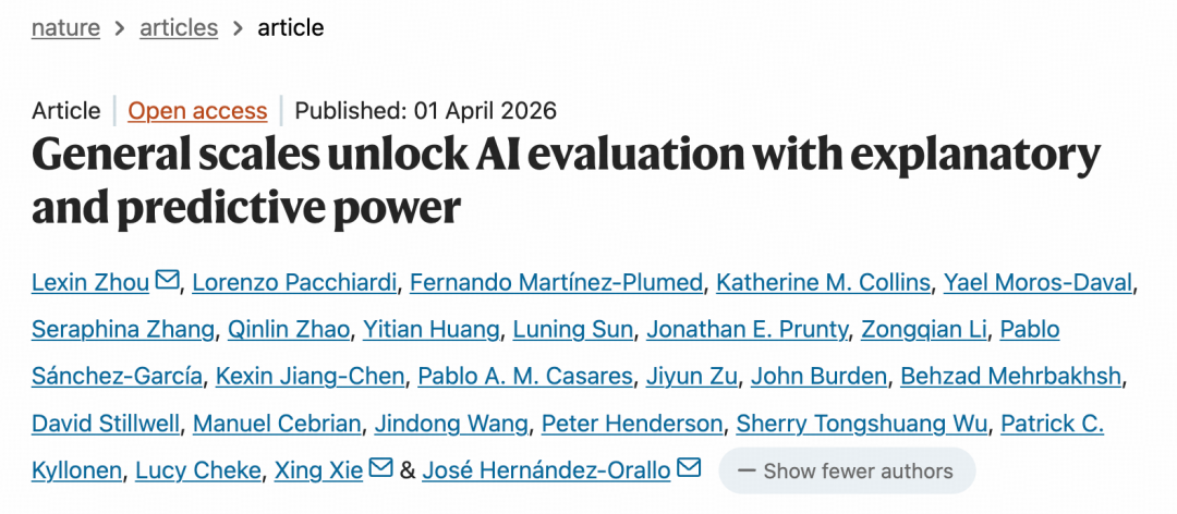 日前,来自普林斯顿大学、剑桥大学、微软亚洲研究院 (MSRA) 的研究团队及其合作者在权威学术期刊 Nature 上提出了一套面向 AI 评估的“通用量表”(general scales)。