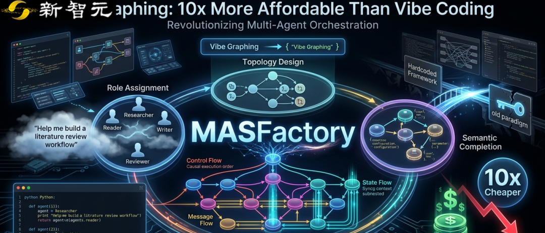 【新智元导读】北京邮电大学团队开源的MASFactory框架,用Vibe Graphing重构多智能体系统编排。它将自然语言指令转化为结构化工作流,三步完成角色分配、拓扑设计与语义补全,API成本降为传统方式的十分之一,代码量暴减,开发效率飙升。系统以图为核心,支持混合编排与全栈可视化,已通过多项权威测试,性能全面超越同类方案。