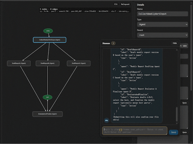 值得注意的是,这三种方式不仅不冲突,反而可以在同一个大型项目中混合嵌套使用。你可以用代码硬编码一个底层极度严谨的工具子图,再用 Vibe Graphing 生成一个静态结构图,最后用可视化拖拽方式将他们组合在为一个完整的Workflow。