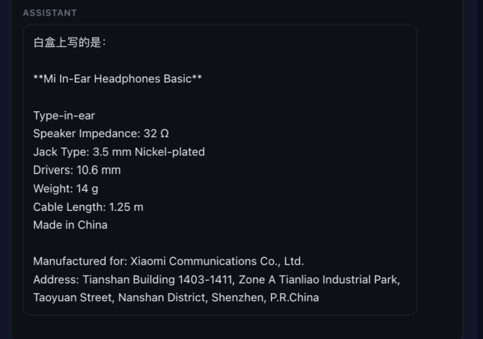 没想到LongCat-Next成功识别了耳机盒上的所有关键参数: