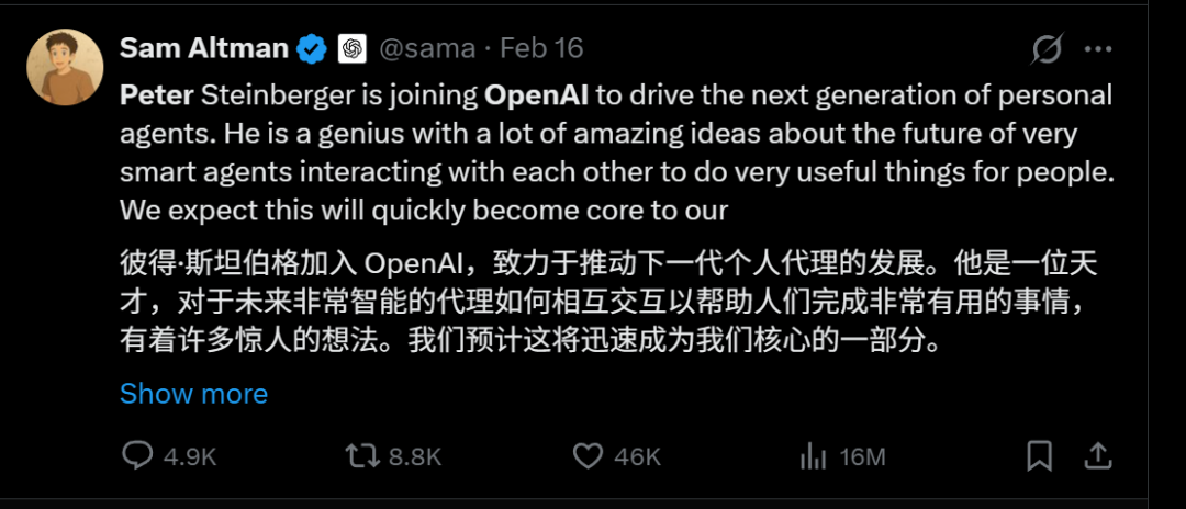 主持人:OpenAI后来把OpenClaw的创始人请进来了。这是不是意味着“AI替你管理生活”就是你们的愿景?