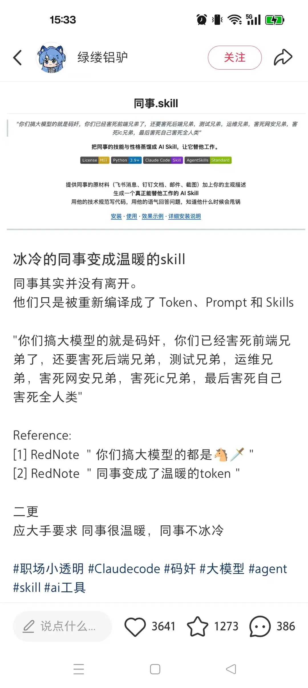 就在大家还在测试「同事.skill」时,更恐怖的事情发生了。