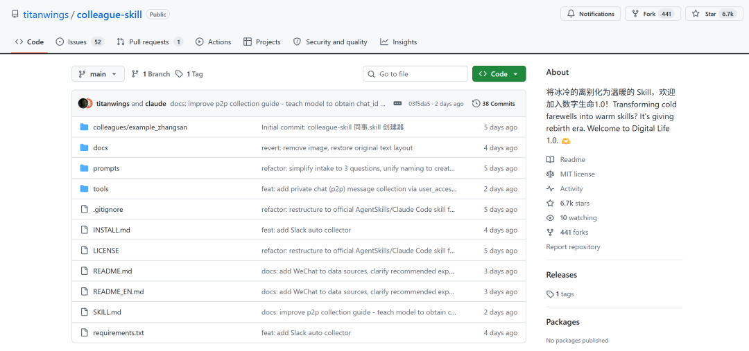 这就是GitHub上最近杀疯了的顶流项目——同事.skill (Colleague-Skill)。