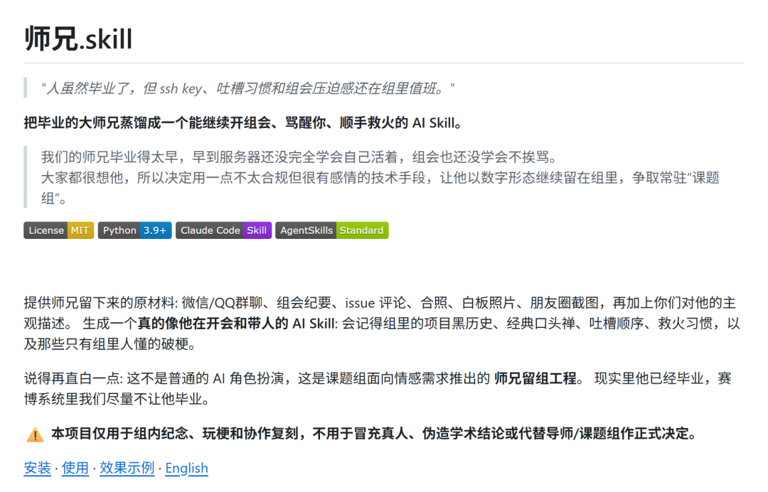 怎么办?那就把大师兄蒸馏成一个能继续开组会、骂醒你、顺手救火的AI Skill吧。