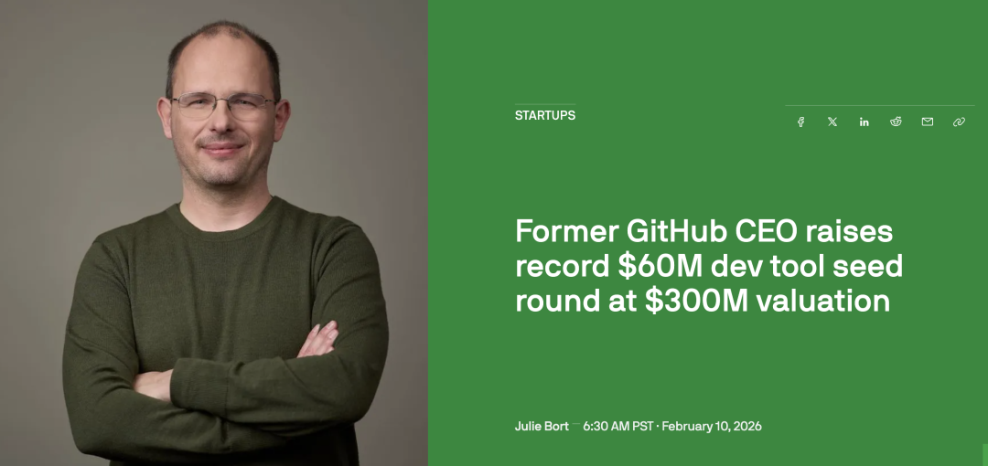 2026年2月,GitHub前CEO Thomas Dohmke创办的Entire以3亿美元估值完成6000万美元种子轮,领投方Felicis称其为「开发工具史上最大种子轮」。