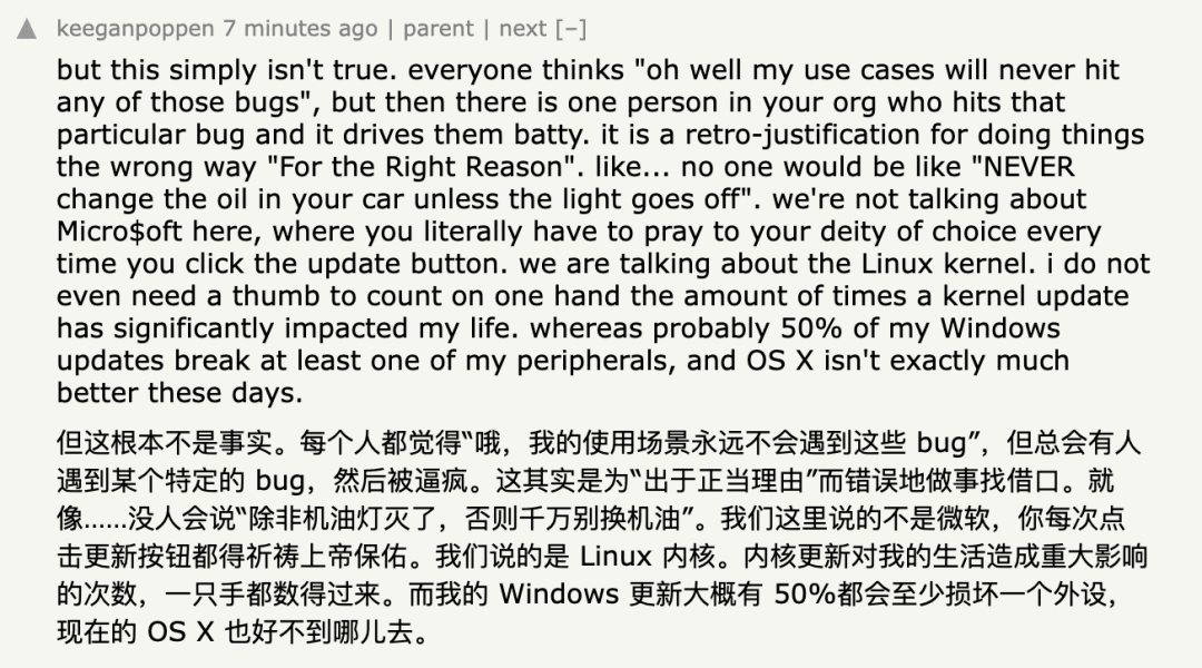 他直言这些Linux开发者纯粹是在自我感动,有些缺陷根本无人在意,盲目升级反而会带来兼容性灾难。