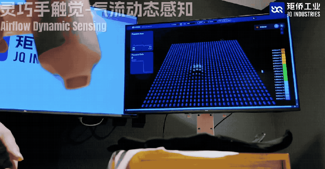 即便是吹风筒吹出的风这样的气流变化,机器人也可以感知到。