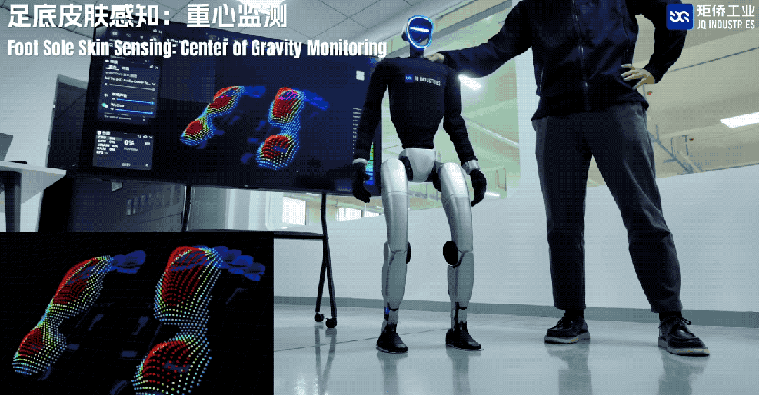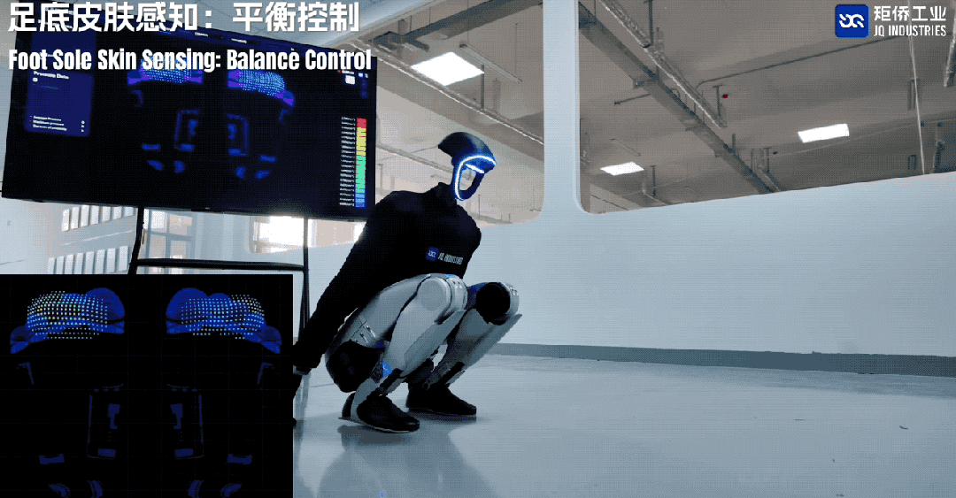 当然,电子皮肤也可以穿在机器人的脚上,帮助机器人进行平衡控制,或监测它的重心。