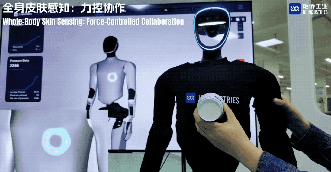 比如碰撞检测,当你把手掌、杯子、或某个物品按压在机器人身上时,它可以检测出物体的形状和实时力度。