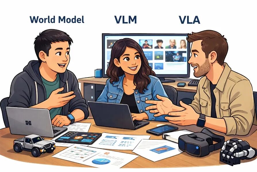 想象以下场景:你创建了一个具身智能实验室,你是PI并且你有三名研究员,他们的方向分别是VLM、VLA和World Model。你希望研究一下具身智能里面最新的video action model最能落地的方向。