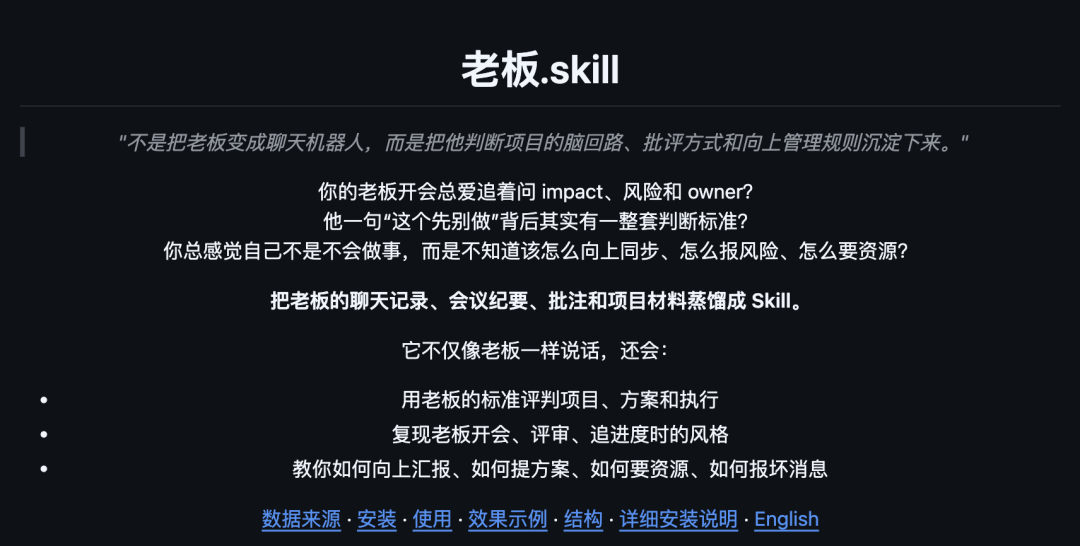 其实,前任Skill这个灵感,来自另一个更火项目,同事.Skill,这位开山鼻祖更是已经拿下了6k+ Star。