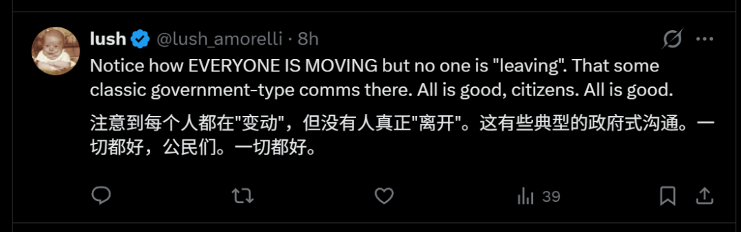 具体事情大家都很熟悉,这里不再赘述,只说一点——当时很多人(包括OpenAI现任总裁在内),也都是以休假的理由表明态度或暂避风头。
