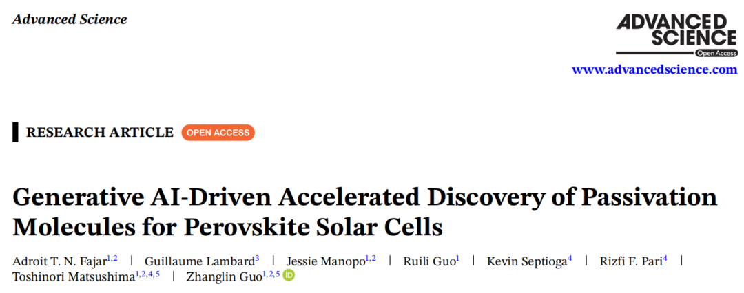 这不是科幻。2026年3月,日本九州大学的研究团队在《Advanced Science》上发表了一项令人振奋的研究:他们用生成式 AI,首次自动设计出了用于钙钛矿太阳能电池的钝化分子,并在实验室完成了验证。
