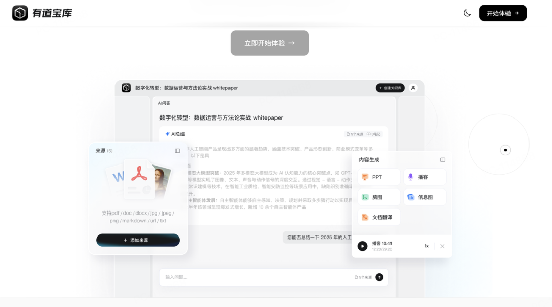 作为对标为国产版谷歌 NotebookLM 的产品,有道宝库 Agent 彻底告别了传统资料检索工具的定位。