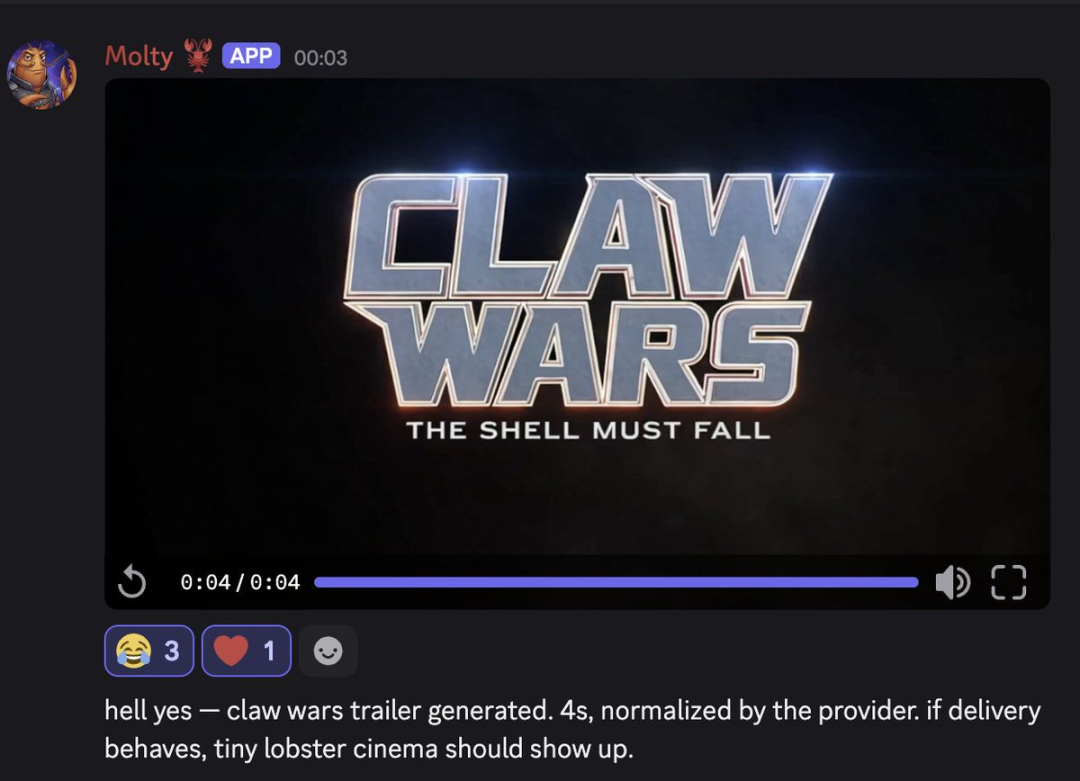 下面这个视频,就是「龙虾」生成的。