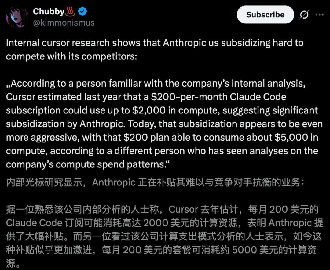 此前,Cursor内部研究爆出,Anthropic正在「自杀式」请客。