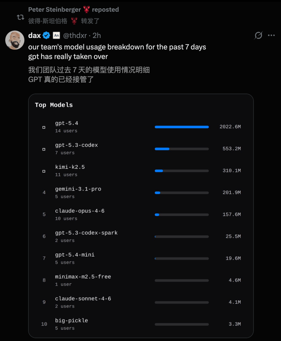 还有人晒出了自家团队,过去七天,完全被GPT-5.4接管了。