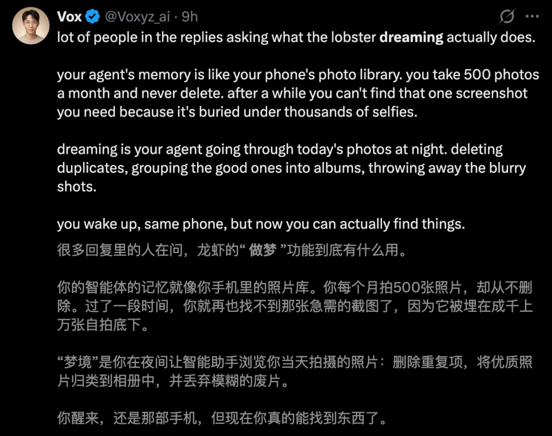 有大佬点评称,OpenClaw最新「梦境」功能,灵感源自Claude Code上周泄露的源码。