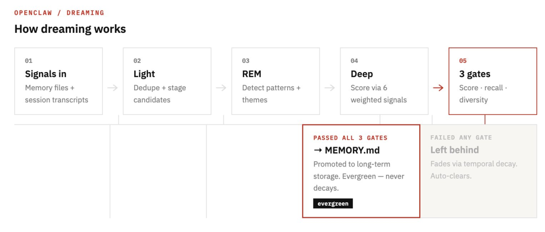 恰恰,OpenClaw也在Dreaming引入了三个阶段。
