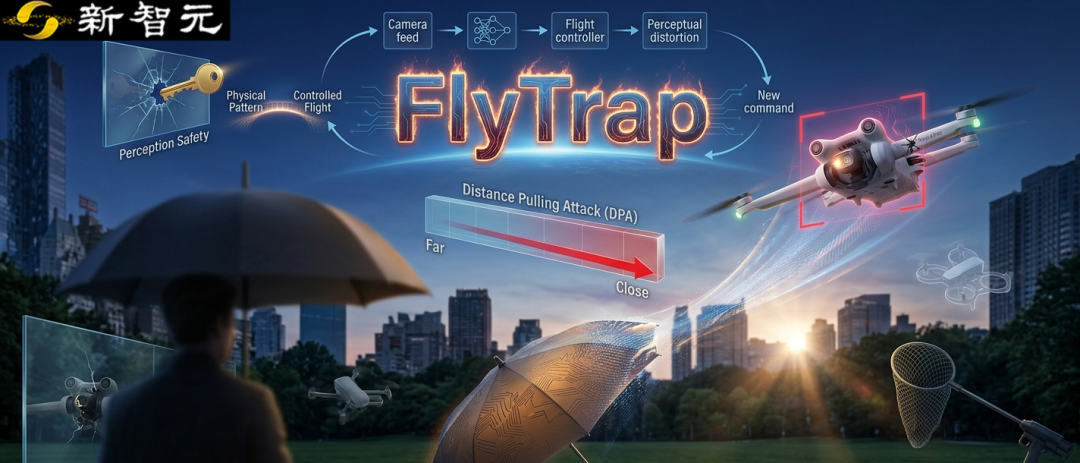 【新智元导读】研究者用特制雨伞干扰无人机视觉系统,让其误判目标在远去,从而失控俯冲。FlyTrap攻击无需信号干扰,仅靠物理图案就能欺骗多款商用无人机,实现静默捕获或击毁。实验显示,物理闭环攻击成功率超60%,且对新人物、新场景均有强泛化能力。这项研究揭示了AI感知系统的重大安全隐患,警示我们:视觉安全正成为智能设备的阿喀琉斯之踵。