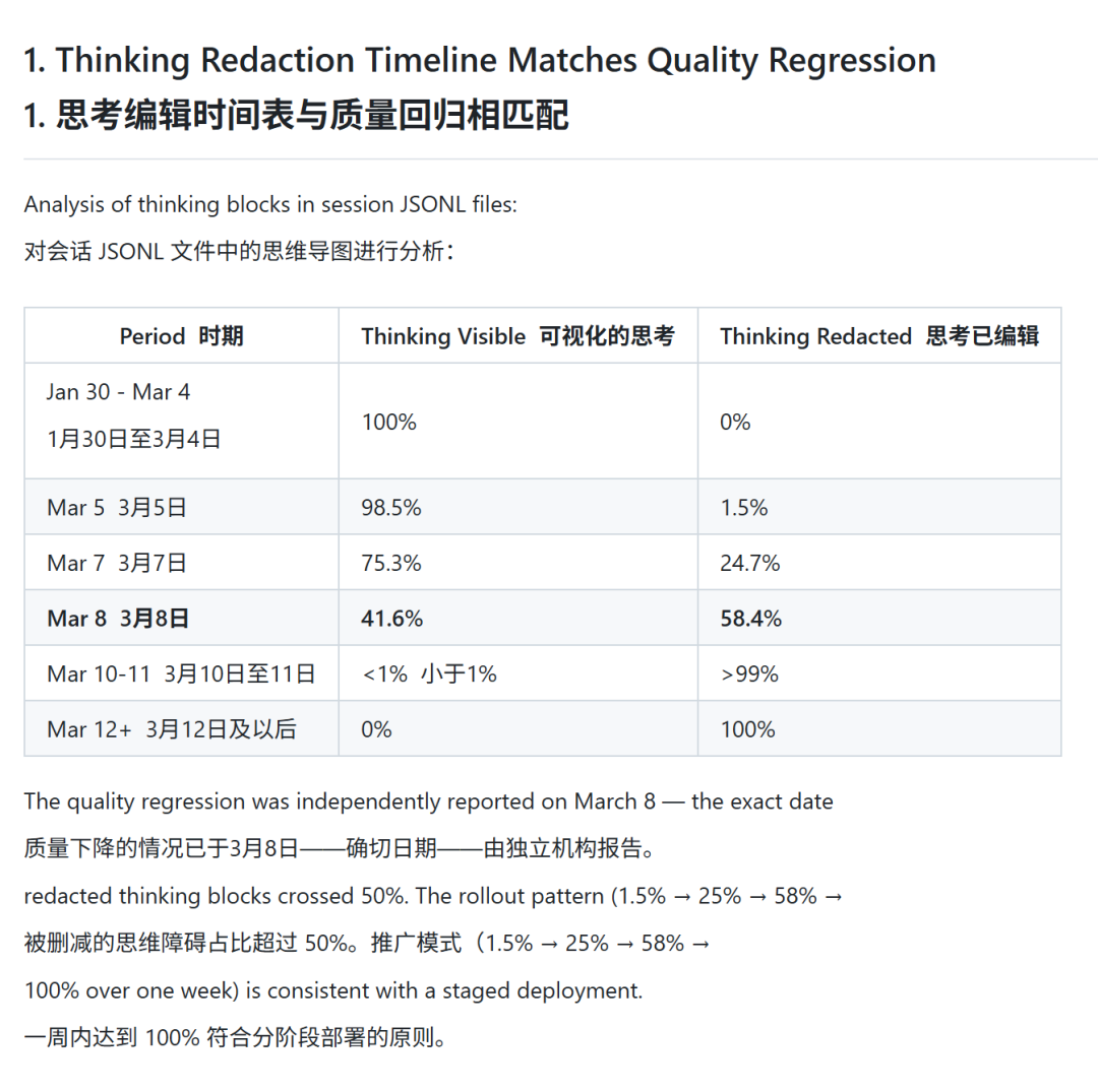 得出的结论令人心惊:从2026年2月开始,Claude在处理多文件逻辑、长上下文保持和工程推理方面出现了明显的性能退化。