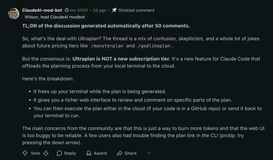 当然,Ultraplan有那么一点效果。少数抢先体验到的用户承认:浏览器端的计划审阅,确实爽。