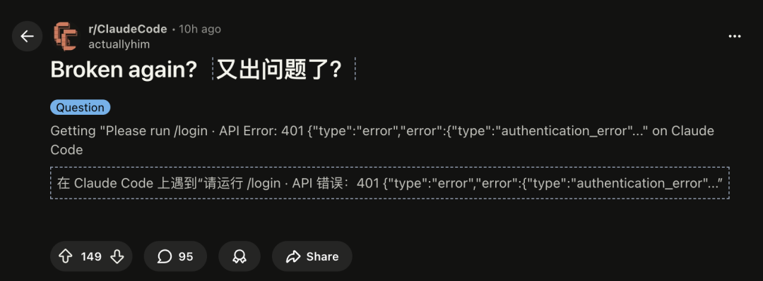 Claude Code疯狂弹窗,让开发者们登录,然后又通知说登不上去。大量开发者涌入reddit愤怒留言:「这家公司简直成了个笑话!」