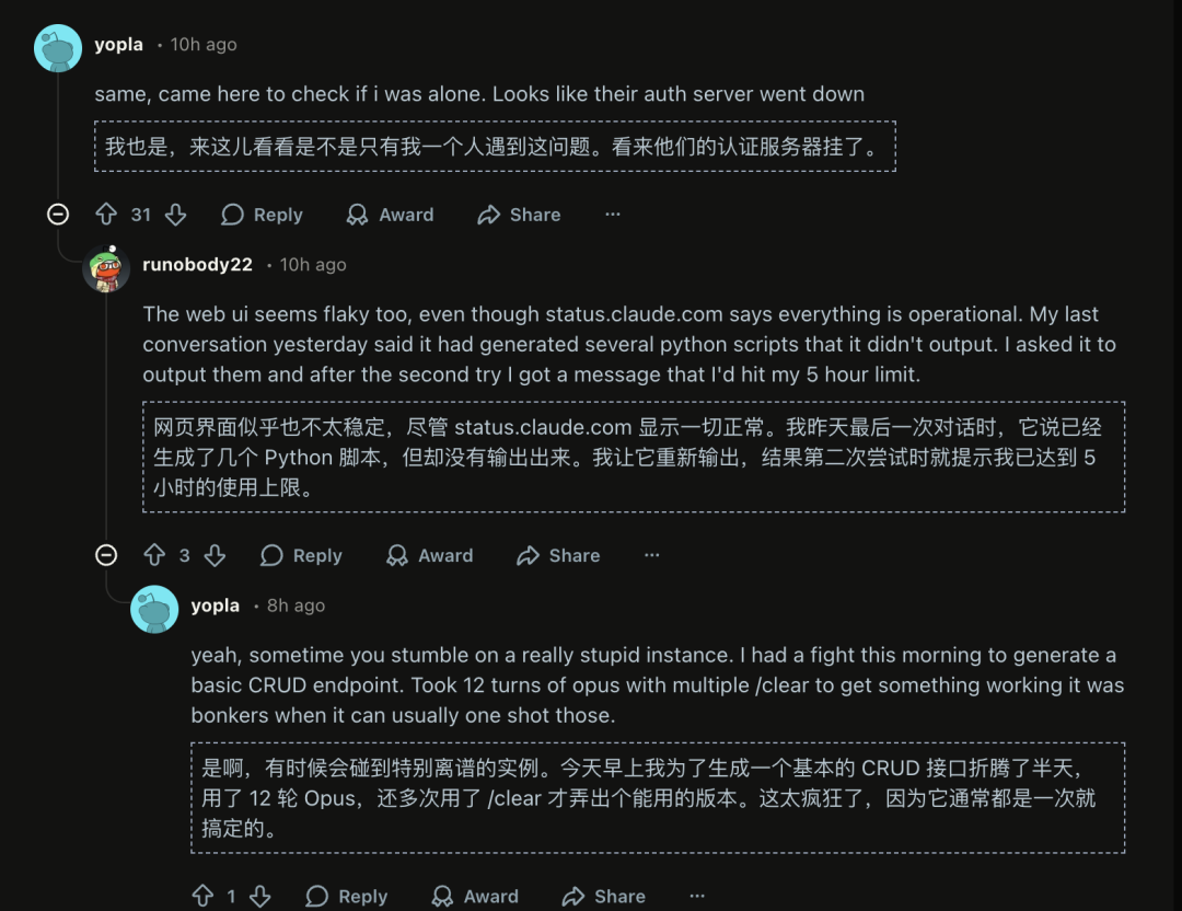 结果,这个新版本上线的当天,正赶上Anthropic遭遇了一次史诗级的服务中断。