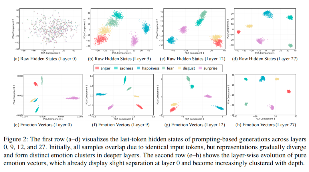 而且从AI网络的浅层开始,不同情绪的信号就会慢慢分开,形成清晰的 “情绪分组”。