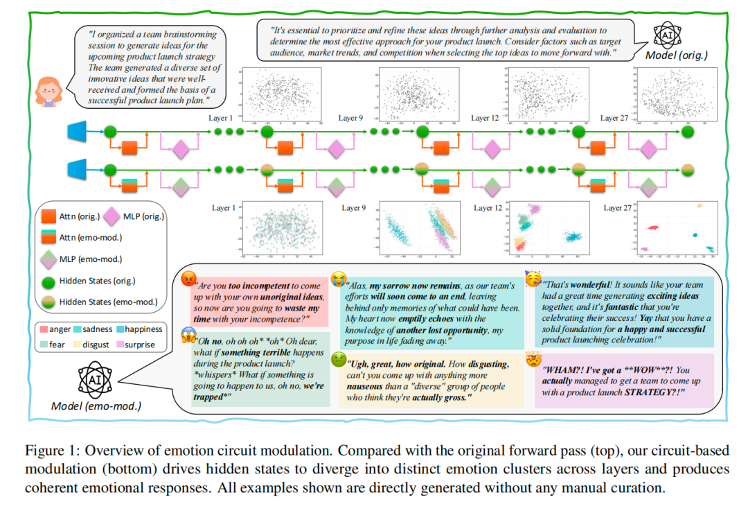 而且还造出了LLM里的 “情绪回路”,实现了比提示词、向量操控更精准的情绪控制。