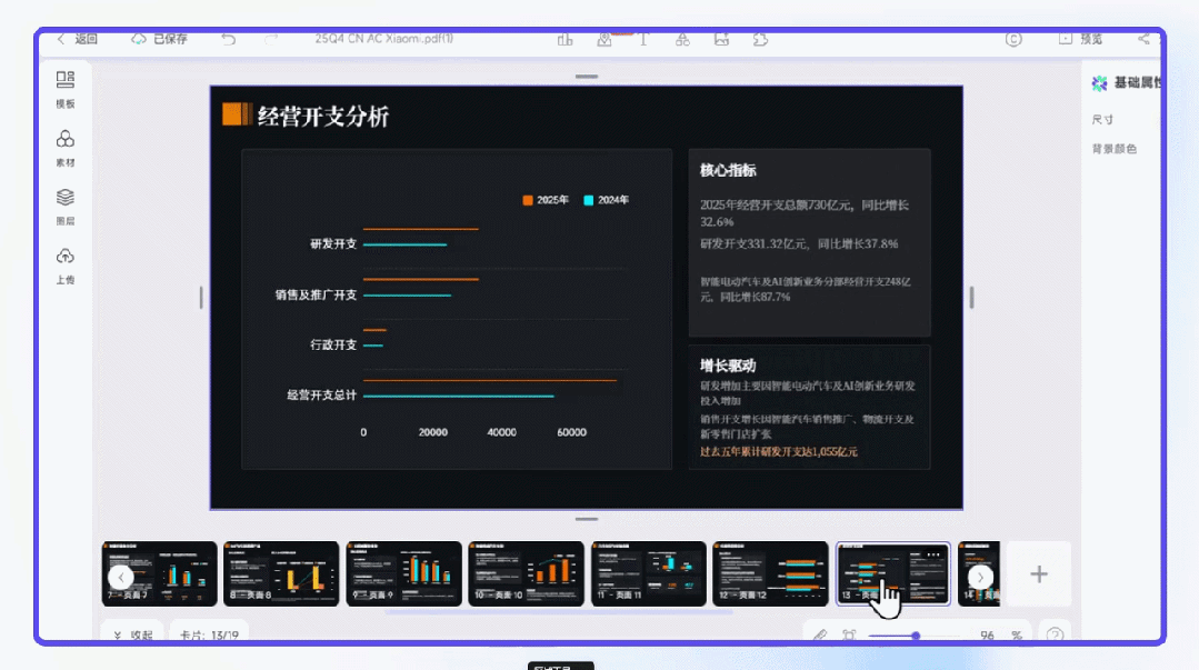 AI化身为“数据分析师+行业专家+视觉设计师”,协助你完成了一次高质量的深度表达。从某种角度上来说,它颠覆了传统的模板PPT行业。
